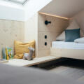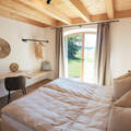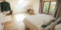-1 Schlafzimmer mit fexiblem Bett, entweder Doppelbett, oder zwei Einzelbetten im Obergeschoss