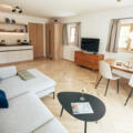 - Vollausgestattete Küche mit Induktionskochfeld und Mikrowelle mit Grillfunktion und Kühlschrank mit Gefrierfach