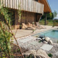 Unser Naturpool wartet immer mit kristallklarem Wasser auf Euch. Das erreichen wir durch eine ausgeklügelte Filtertechnik. Ihr könnt bequem über große Steinstufen ins Wasser schreiten. Bei einer Tiefe von 90cm bis 1,40m können groß und klein hier eine tolle Zeit verbringen.